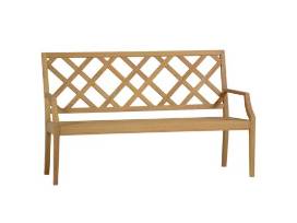 This outdoor teak bench combines intricate detail with classic elements. The Haley Bench's lattice back design brings out a traditional style, while its subtle scalloped arms and tapered legs call attention to the minute details--an irreplaceable piece for your outdoor room.
