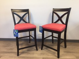1NEW Pair of lovely barstools donated by Braxton Culler Furniture. Black with Pink Greek Key Fabric.