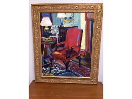 Stephen Moore Framed Red Chair Painting
