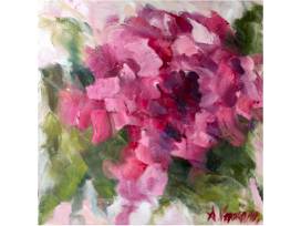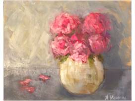 About the Artist: Ashley Vanore is an emerging Greensboro artist who found her passion for painting six years ago. Since then she has completed numerous workshops with local artists, as well as artists worldwide. She had her first solo show in June of 2016 at Farenheit Kollectiv in downtown Greensboro. Her work is represented by The Fat Cat Ltd. at Priba Furniture. While she has experimented with different mediums, Ashley prefers to use oils and enjoys creating landscapes, still lifes, large scale florals, and abstracts. You can keep up with her work via Instagram at ASHLEYVANOREART. Ashley is a Greensboro native who graduated from Greensboro Day School and received a BA in English from the University of NC at Chapel Hill. She has been married to her husband, Richard, for 23 years and they are blessed with five children and two yellow labs.