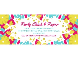 Party Chick and Paper is a locally owned, fabulously fun, gift, stationery, holiday and party store located in Greensboro, NC. Opening October 1, 2015, Party Chick and Paper brings very personalized service to a high energy, very fun store full of all the things you need, even if you may not know it yet!