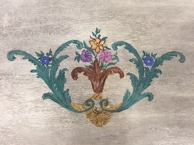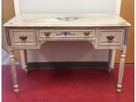 Hand painted desk by artist Julie Dameron. It has been hand painted with a French motif and was antiqued to look shabby Chic.