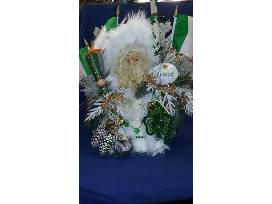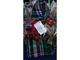 Made exclusively for this year's auction by parish member, Robin Berk. Features Santa with green tartan plaid coat.