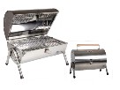 TABLETOP GRILL: This stainless steel tabletop grill unfolds to provide a cooking grid on both top and bottom. Reinforced legs increase stability. It boasts a 252-square inch cooking area. The NWTF logo is etched on the front. Dimensions: 11.2"D x 17.9"L x 12.6"H