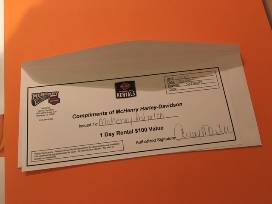 A 1 day rental from McHenry Harley Davidson (must have motorcycle license) and an XL T-Shirt