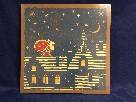 Ho! Ho! Ho! Lighted wall canvas of Santa up on the rooftop with his bag of toys and standing whimsical snowman.