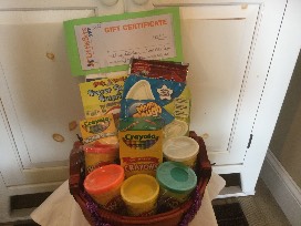 Also included is a basket of goodies for your " Little Bits:" Play Doh, Crayola Crayons, Moon Dough an Easy Reader entitled, "Ready Freddie Secret Santa Surprise" and a puzzle model.