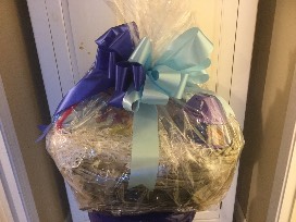 Included in this pretty basket is a 3-piece traveling desk with dry eraser & marker, light-up globe, a backpack and 2 separate pouches.