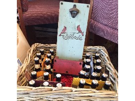 While you are playing, and proudly displaying your ICD Spirit, enjoy a nice cold Sclafly's beer, from the (4) six packs that are included and stocked in a rustic woven basket! Don't forget to hang your new, retro, St. Louis Cardinals hand-made wooden wall hanging, that just so happens to double as a bottle opener!