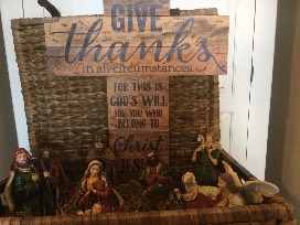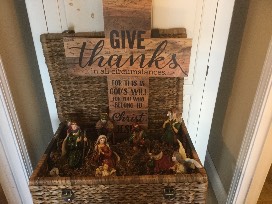 The Nativity figures are displayed in a course wicker basket, which is meant to be symbolic of the elements in which our beloved Christ was born.