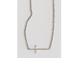 This graceful stainless silver cross centerpiece necklace is elegant in its simplicity. It measures 16 to 18 inches in length and has a very delicate presentation.