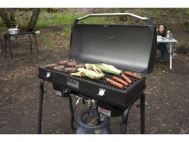 This Camp Chef Grill is both a stove and a grill! In addition to the camp stove, we've added the Deluxe BBQ Grill Accessory (Deluxe Barbecue Box). Fitting on all Camp Chef's 14" cooking systems, this barbecue box turns your stove into a grilling machine, outperforming any other portable grill.