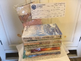 Also included in this bundle is a $50 Catholic Supply Store Gift Certificate, and two handmade book covers by Linda Nolan.