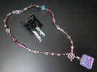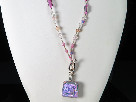 Square Glass Pendant with Hand Beaded Necklace & Matching Icicle Drop Earrings.