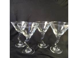 Enjoy a sampling of various mini liquors and 4 zig-zag stem martini glasses