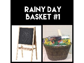 Perfect for a "Rainy Day"! This basket includes an Art easel, Art projector, and various Art supplies. Just what you need to encourage your little one to be creative and to keep them busy.