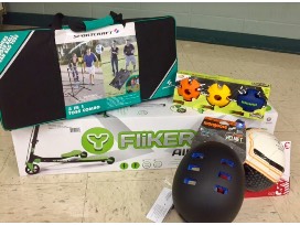 Too much time spent on video games, tv, computers, and ipads? Get the kids out of the house and playing outside this Spring? They are sure to have a great time with this item. Basket includes a Fliker scooter, helmet, soccer ball, mini ball set, and a three-in-one toss combo.