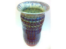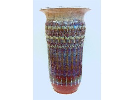Large ceramic vase by C. Grove. 18" tall, 10" diameter at top.