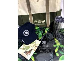 Embrace your green thumb with a Missouri Botanical Gardens tote filled with a 1 year Friends and Family level membership, large reusable tote, note cards, member baseball cap, and reusable travel mug!