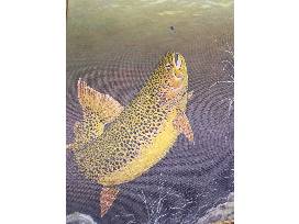This painting by John Murphy features a brown trout contemplating taking and rising to an emerger. The framed painting is 18" x 24".