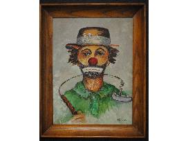 '"TIME FOR A NEW HOBBY", inspired by classic paintings of golfing clowns, is an original oil on canvas painting by award-winning artist Mary Jo McLean. Now living and working in Pensacola, Florida, Mrs. McLean lived for many years in Jacksonville, North Carolina, where she was active with the Onslow County Arts Council.