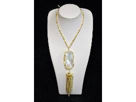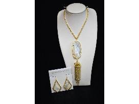 A beautiful white tassel necklace with matching white earrings from Kendra Scott at North Hills.