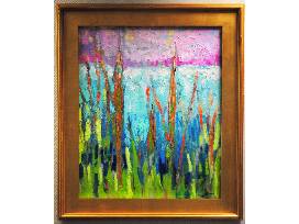 A colorful piece of Marshes at the coast. Oil on canvas, abstract. 30" by 25"