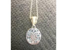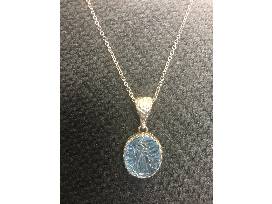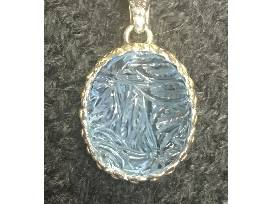 Do you have a December birthday? Or do you just love the color blue? You could be wearing a beautifully carved Blue Topaz silver and 18K gold pendant necklace. Included with a 20 inch chain.