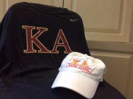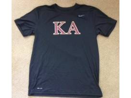 100% polyester, Dri-FIT fabric wicks away sweat to help keep you comfortable and dry. Short-sleeve construction is ideal for a variety of training conditions and has the Nike swoosh on the upper left chest and crimson "KA" outlined in gold on the chest. Shirt is black in color and men's size Large. Also comes with a white Kappa Alpha adjustable cap (one size fits most).