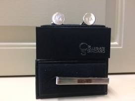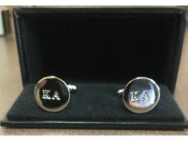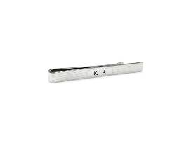 These custom-made circular engraved KA cuff links are paired with a simple and timeless engraved KA Tie Clip. Both are rhodium plated for a lasting finish and classy look. A must-have for the well-dressed gentleman!