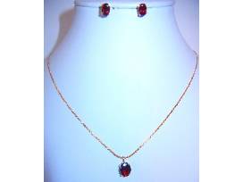 10Crimson and Gold for your KA Rose! Lovely natural garnet gemstones are mounted in 14K gold-filled settings for both the pendant stone and earrings. The pendant stone measures 10x8mm while the earring stones are 7x5mm. The gold-filled serpentine chain measures 18 inches.