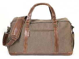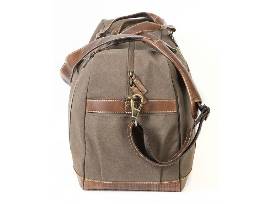 The Bryant LTE Getaway in Mahogany and Heather Brown lightweight duffle fits all your travel essentials without weighing you down. Italian waxed pull-up leather that develops a rich, tarnished, "patina" over time paired with durable washed canvas. Features houndstooth linings and antiqued brass hardware.