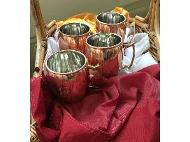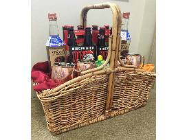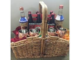 Drink your Moscow Mule in style with this set of four 16 oz. solid copper mugs engraved with KA Badge! This package also includes (2) 750ml bottles of Tito's handmade vodka, (2) 4-packs of Cock 'N Bull Ginger Beer, lime juice and a basket to carry it all in. The perfect drink and perfect package for summertime!