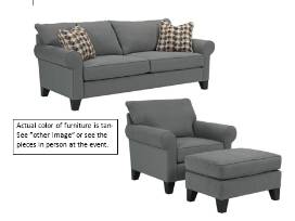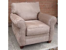 Broyhill Noda sofa, chair and ottoman upholstered in tan microsuede fabric.
