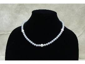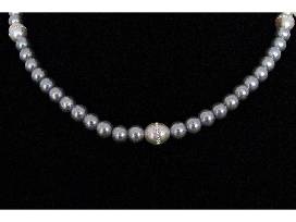 19" silvertone pearl necklace featuring 3 accent pearls with sparkly insets.
