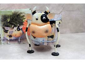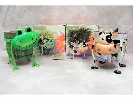 Cute pair of animal planters! One cow and one frog with painted wooden flower pots.