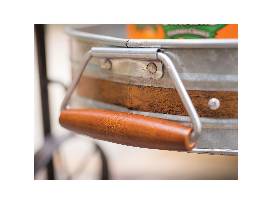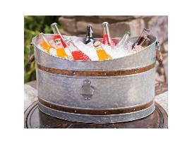 This item features: 100% galvanized steel, copper and wrought iron materials, beverage tub with 9.5-gal. capacity, attached bottle opener, removable tub, removable tray and a wood handle that doubles as paper towel holder.
