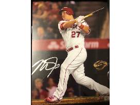 Take home your very own autographed photo of Mike Trout, the Angels' star center fielder and a red Angels baseball cap.