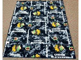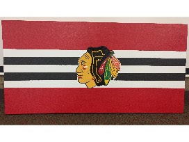 Show your love for the Chicago Blackhawks with this spectacular custom painted 24 x 48 canvas. A great addition to a Hawks fan's collection! You also need to keep warm while watching the Hawks in action, so we have included a beautiful hand-made Blackhawks quilt. Stay warm and stylish!
