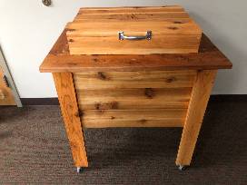 Wow your friends at your next barbecue and show your pride in Mount Carmel with this custom wooden cooler. This cooler is as functional as it is good looking, holding 48 cans and includes a drain to easily drain ice water. The Mount Carmel logo carved into the lid is something to see!