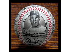 These balls are individually numbered and feature Yogi Berra (113 of 152), Jackie Robinson (62 of 100) and Brooks Robinson (97 of 152). Each ball comes in a clear acrylic display case and comes with a signed certificate of authenticity.