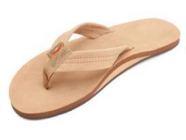 Description: Two (2) pair of women's Rainbow Single Layer Premier Leather Sandals with Arch Support (Size Small & Medium; Sierra Brown) and two (2) pair of men's Rainbow Single Layer Premier Leather Sandals with Arch Support (Size Medium & Extra Large; Sierra Brown).