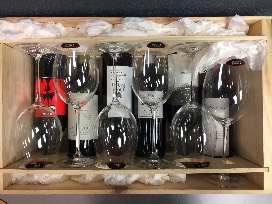 6 varieties of California Red Wine Basket with 6 Riddel Wine Glasses