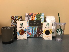 Starbucks lovers, this one is for you! This basket includes all your Starbuck's favorites: a $25 Starbucks gift card; 2 oz Frech Roast coffee; 2 lbs Pike's Place coffee; an exclusive coffee blend, instant coffee & tea packs; a coffee mug; and a reusable drink tumbler with straw. Finally, a lovely Art & Coffee book will be yours to display on your own coffee table.