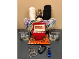 If by chance you did not get enough food & drink at Summerfest, Enjoy this gift basket featuring old fashioned Root Beer Schnapps; 2 cocktail glasses; a $25 gift gift card to Saloon on Calhoun with bacon; two t-shirts; 2 bottle opener key chains; drink cozy and bandanna!