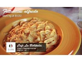 Cafe La Bellitalia is a quaint Italian eatery delighting locals and tourists alike. Do you like authentic Italian food. Give a try to this delightful neighborhood eatery that makes their lasagna and spaghetti and fettucine sauce all from scratch. You'll love it. $25.00 Gift Certificate