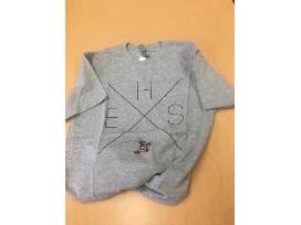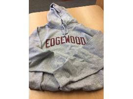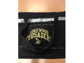 Inside the bag is a beautiful pair of sweats, size Adult small with pockets on the side and a big E on the leg. Then there's a really cool EHS grey-hooded sweatshirt size M and a M T-shirt. There is also a plastic water bottle with the Crusader pictured on it and Edgewood High School printed on it. Inside the bottle is a lanyard and four rubber items that make the E for Edgewood and a Crusader in red! Edgewood stuff is always neat!