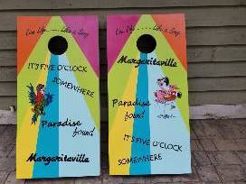 Painted by Karen Grosse, this 2' x 4' regulation-sized cornhole game would be a blast to play with your Margarita-loving friends at any party. Included are two sets of 4 bean bags.