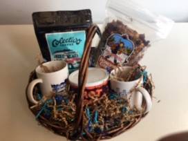 Now this is really nice. A Colectivo Coffee Box with Colectivo coffee, hot cocoa and home-made granola. Also included in the basket are two St. James mugs! So much fun.