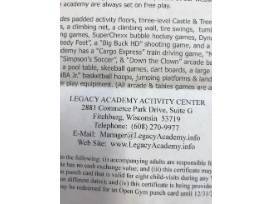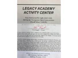 This academy's indoor playground provides an ideal venue for your child or children. Certificate good for eight child visits during any Youngsters Open Gym sessions.